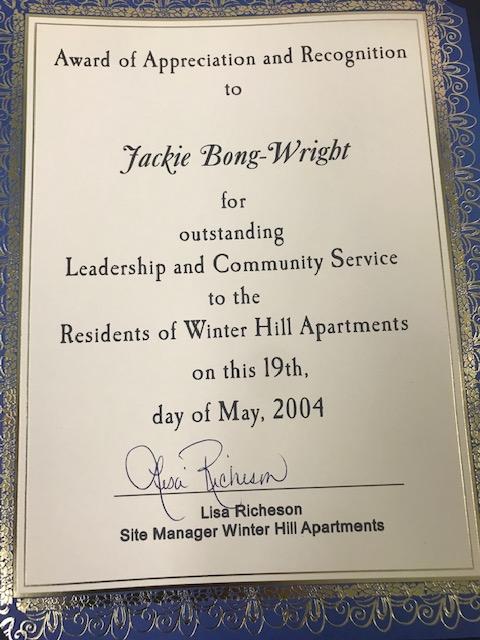 2000 – Award by Asian Pacific American Gala Coalition for civic participation
